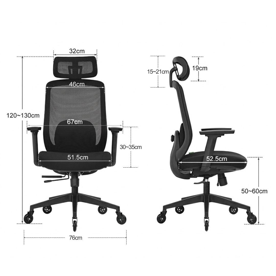 - 3D verstelbare armleuningen – Verstelbaar in hoogte, diepte en zijwaarts voor een perfecte armpositie.
